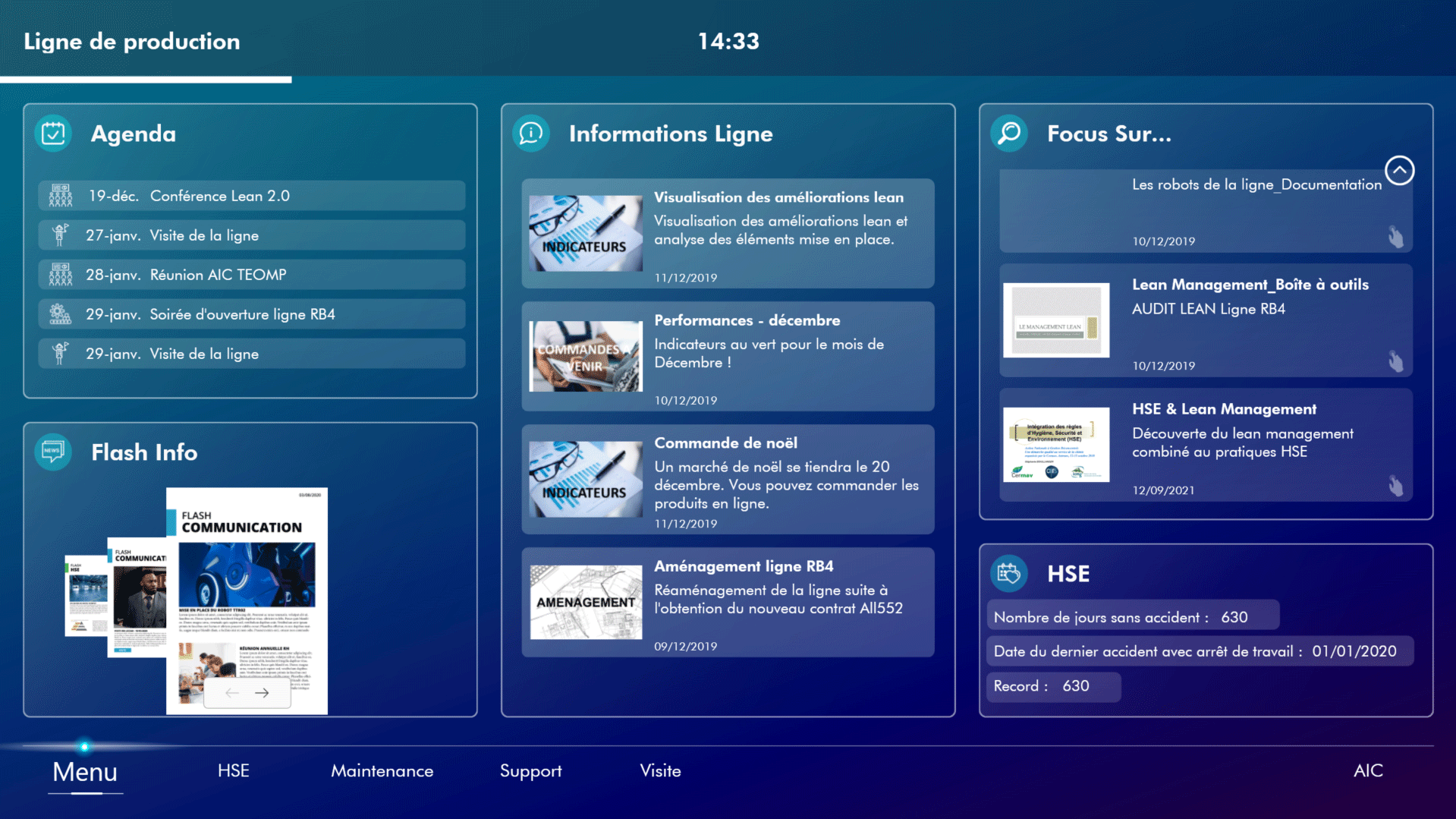 Avec Industry Dashboard, plus besoin de connecter ou déconnecter différents ordinateurs pour accéder aux informations. Tout est centralisé et accessible en un seul endroit, vous permettant de mieux gérer vos lignes de production et de simplifier vos processus internes.