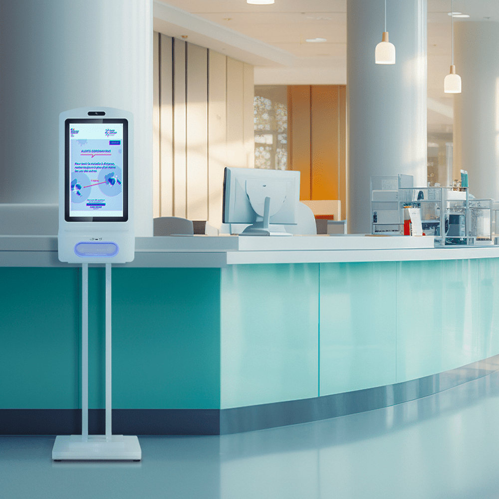 La borne Kiosk Screen & Wash associe la technologie d’affichage dynamique à un distributeur de gel hydroalcoolique automatique. Avec son design moderne, cette solution est particulièrement adaptée aux environnements accueillant des clients ou des visiteurs, tels que les restaurants, les hôpitaux, les entreprises, ou encore les hôtels. Sa fonctionnalité de distribution automatique de désinfectant, combinée à un écran interactif, permet à la fois de garantir des gestes sanitaires tout en informant ou divertissant vos utilisateurs.