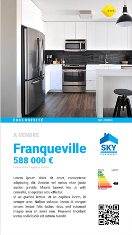 - Flexibilité et personnalisation : Grâce à la création multizone et aux modèles personnalisables, vous avez la possibilité de créer des affichages dynamiques et sur mesure pour chaque bien immobilier.