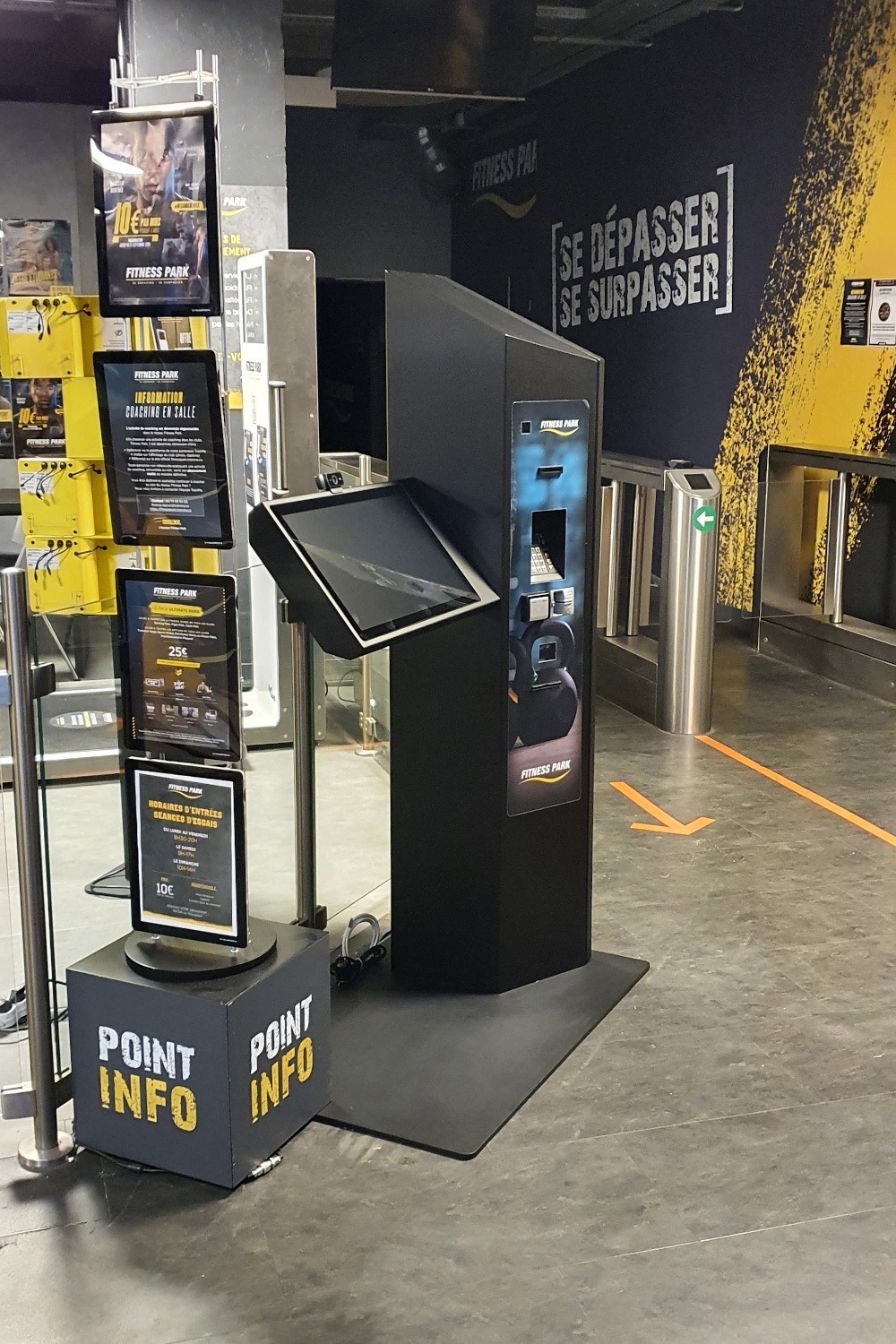 Dans le cadre de la digitalisation de leurs services, Fitness Park a choisi de déployer une borne interactive de paiement et de souscription dans ses clubs. Cette borne, développée en collaboration avec Arteractive, permet aux membres et aux nouveaux adhérents de gérer leur abonnement en toute autonomie, offrant ainsi une solution fluide et rapide pour accéder aux services du club.